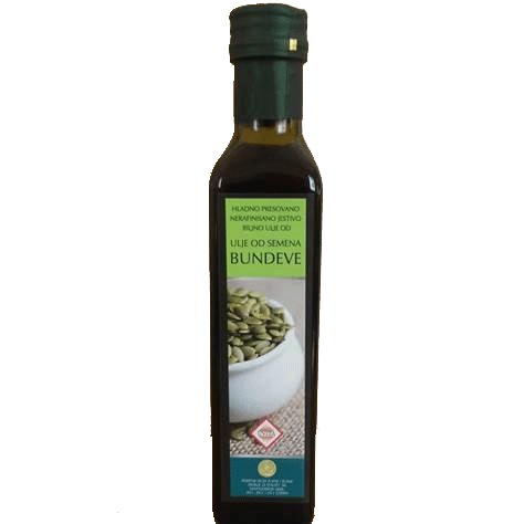 Ulje bundeve se dobija postupkom presovanja na hladno sirovih semenki uljane tikve golice. Reguliše problem uvećane prostate, pomaže u lečenju infekcije mokraćnih kanala kod muškaraca i žena, poboljšava kvalitet i kvantitet spermatozoida, stimulativno deluje na ceo organizam, pospešuje normalan rad bubrega. Savršeno se uklapa uz sve vrste salata, kako svežih sezonskih i zimskih salata, tako i obrok salata. Služi za prelivanje mnogih vrsta sireva, ribe, pirinča i kao odličan sastojak u izradi marinada i soseva.